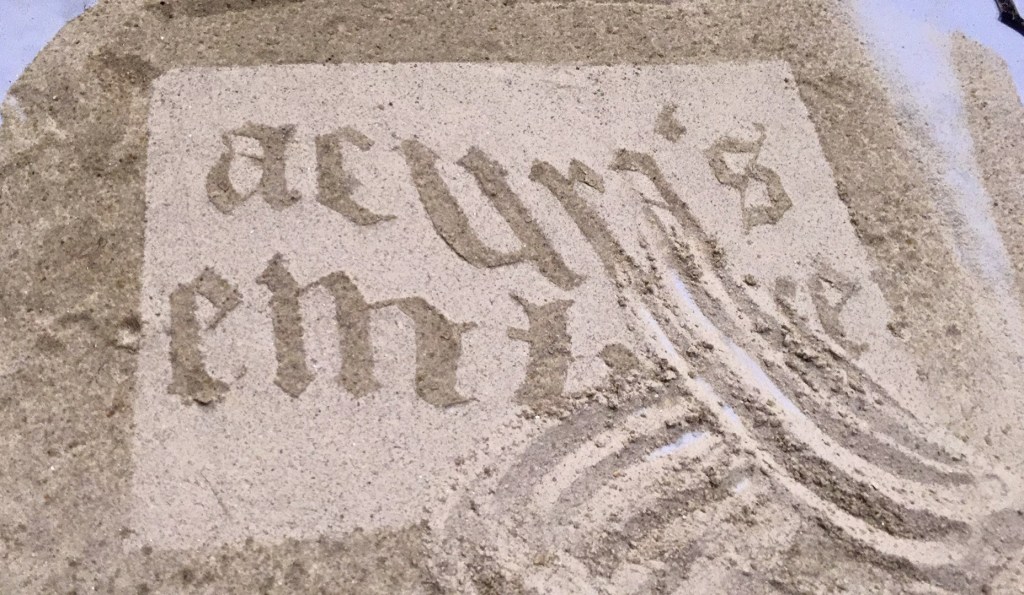 Acura‘s Embrace (Announcement), water, sand, 28 x 43 cm, 2016